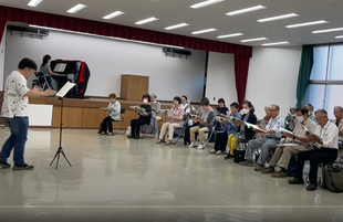 5時半開始、体操で身体をほぐし発声練習をしてから「さあ合唱!」7時半終了まで笑いの絶えない楽しい練習です。
